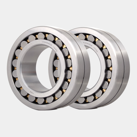 此類軸承具有對稱滾子,內(nèi)圈有擋邊。導(dǎo)圈在兩列滾子中間,從內(nèi)圈定心。保持架為一體式黃銅或鋼制機(jī)削架。CA 及 ECA 型采用 C 型式的表面加工,ECA 型帶有加強(qiáng)滾子,從而提高承載能力。